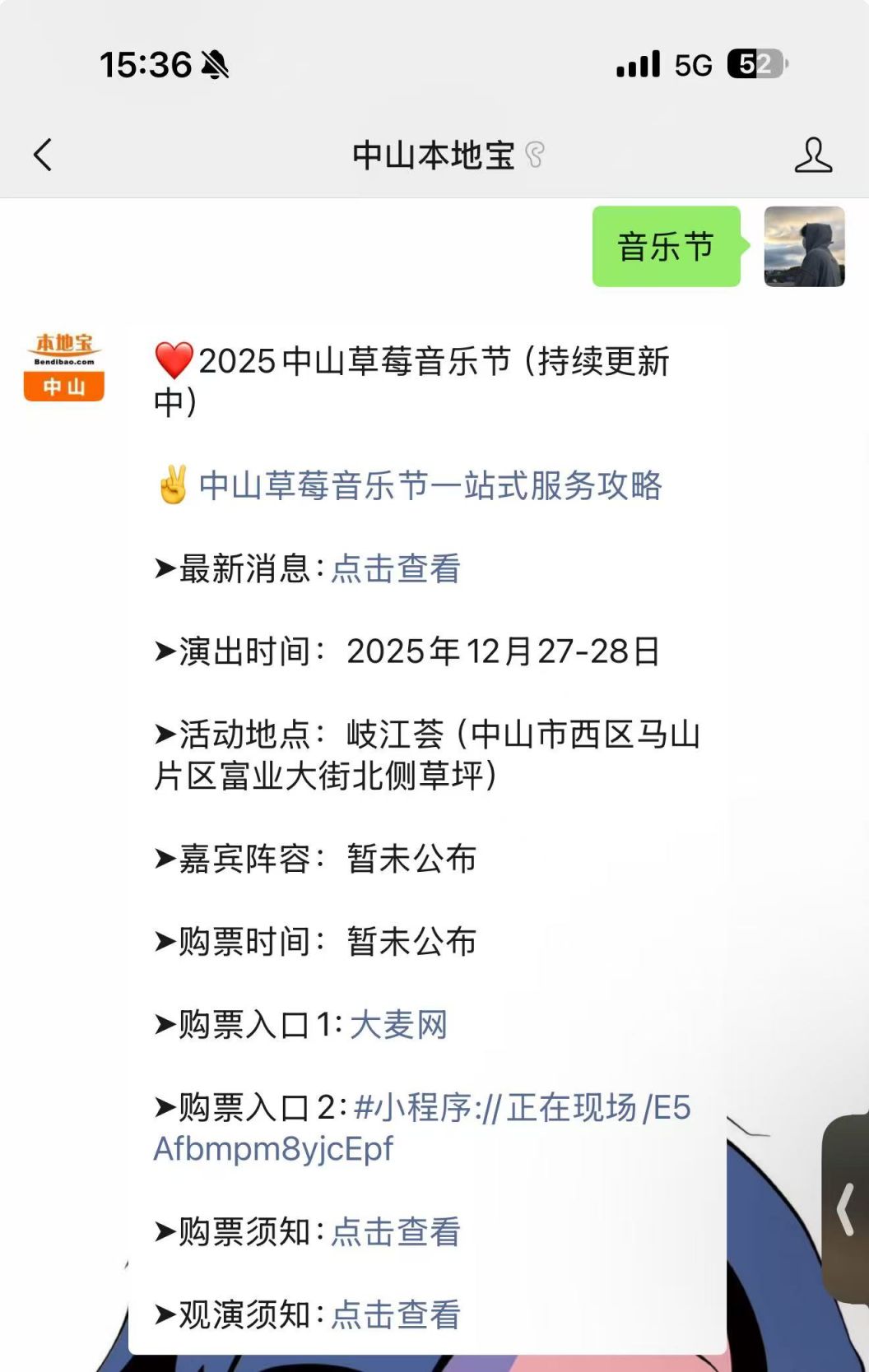 温馨提示:微信搜索公众号【中山本地宝】,关注后在对话框回复【音乐节】可获2025中山草莓音乐节活动时间,活动地点,嘉宾阵容,活动票价,购票入口等信息!